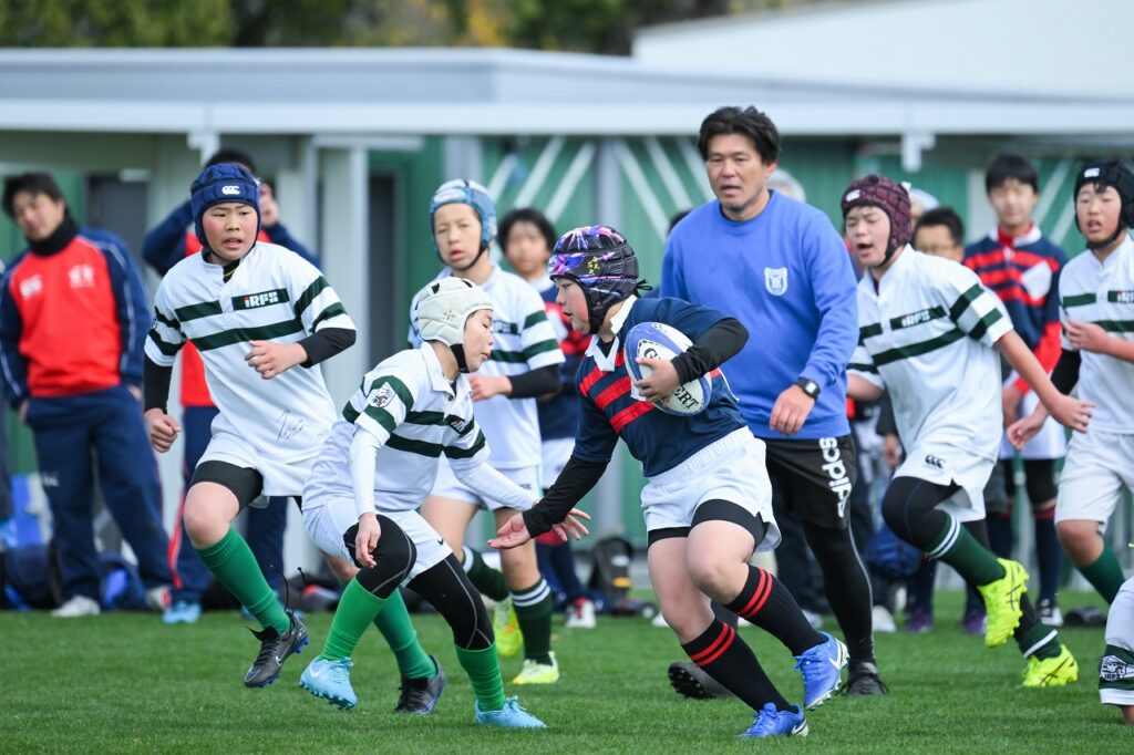 当日は、6年生225名、保護者約500名、大会運営スタッフを含め、総勢約800名が参加する大変活気ある大会となりました。会場には朝早くから多くの方が集まり、試合前から熱気と期待に包まれていました。開会式では、少し緊張した表情を見せながらも、愛知県ラグビー協会の皆様やヴェルブリッツ現役選手からの激励の言葉に、真剣に耳を傾ける子どもたちの姿が印象的でした。